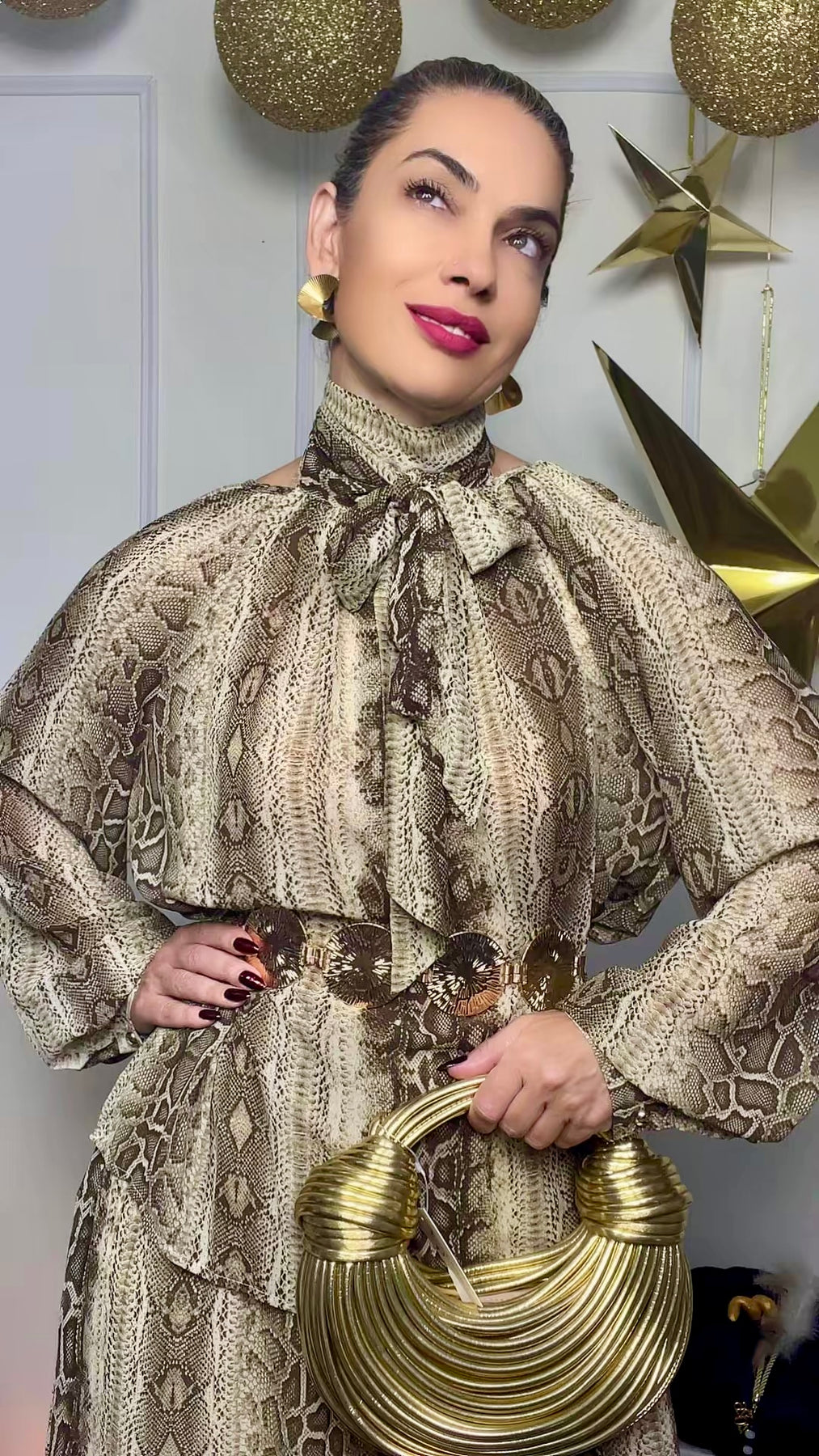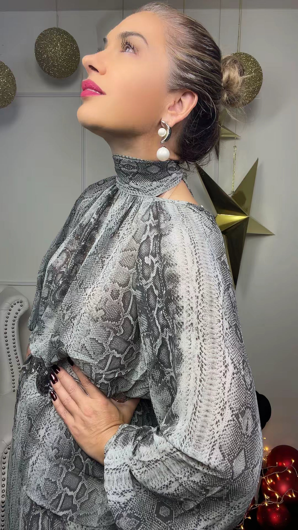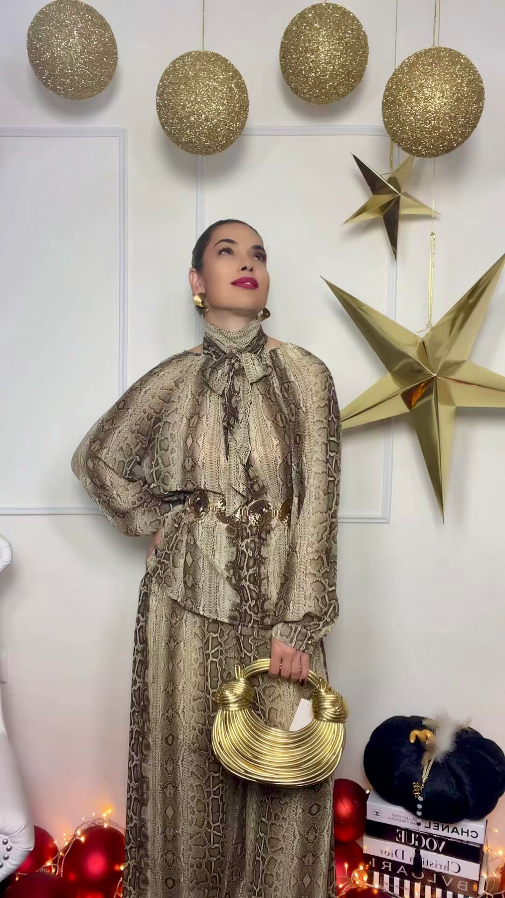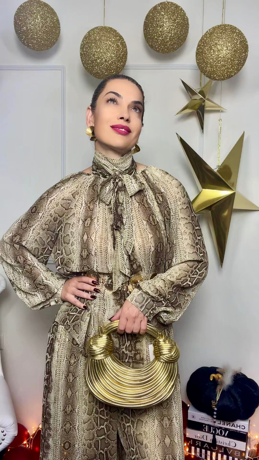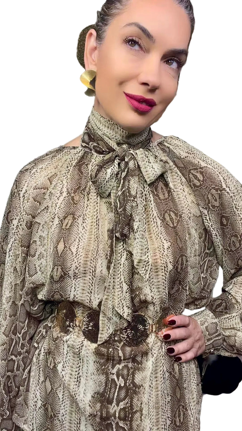 Κομψό και εντυπωσιακό γυναικείο σετ με snake print, ιδανικό για εμφανίσεις που ξεχωρίζουν από το πρωί έως το βράδυ.